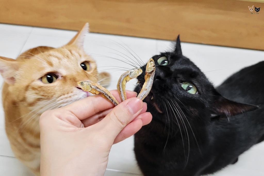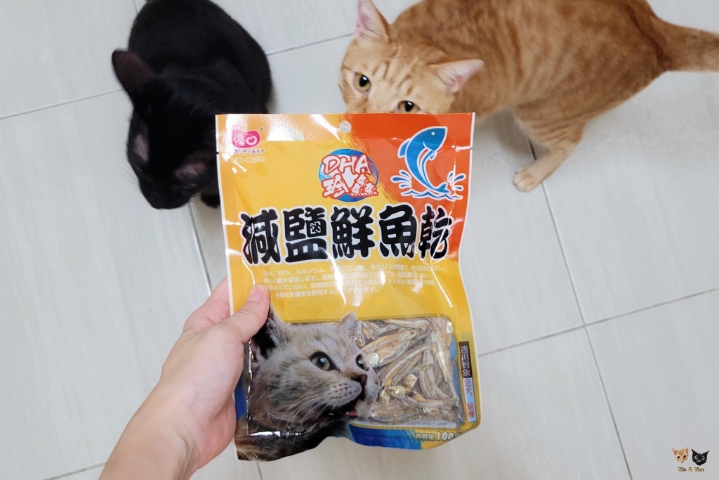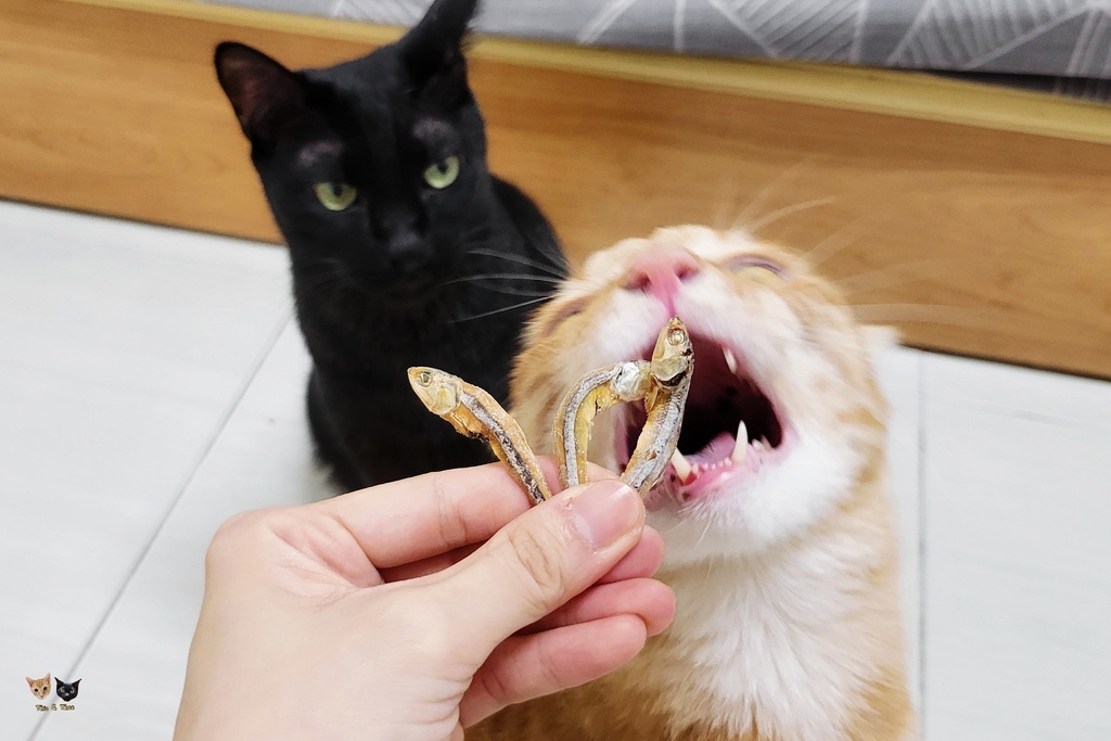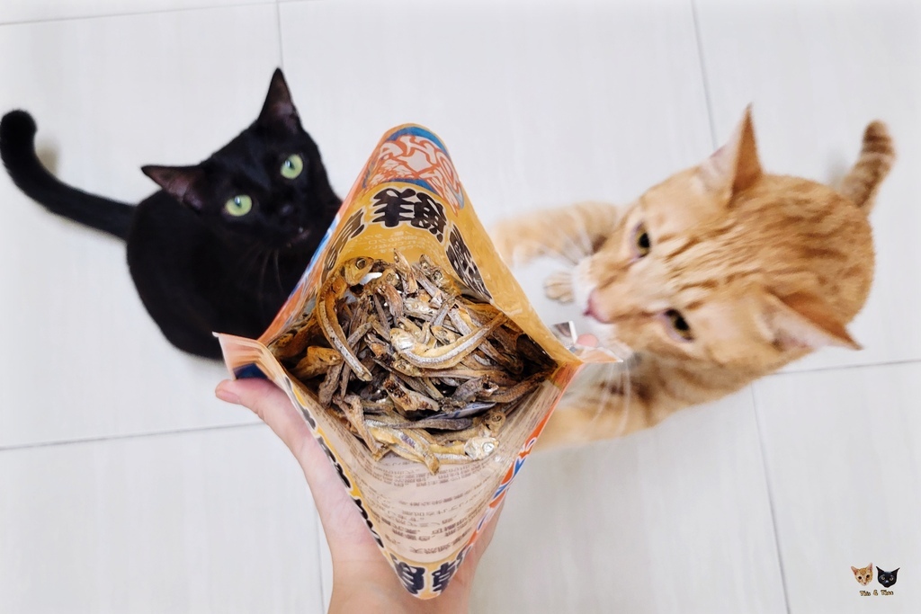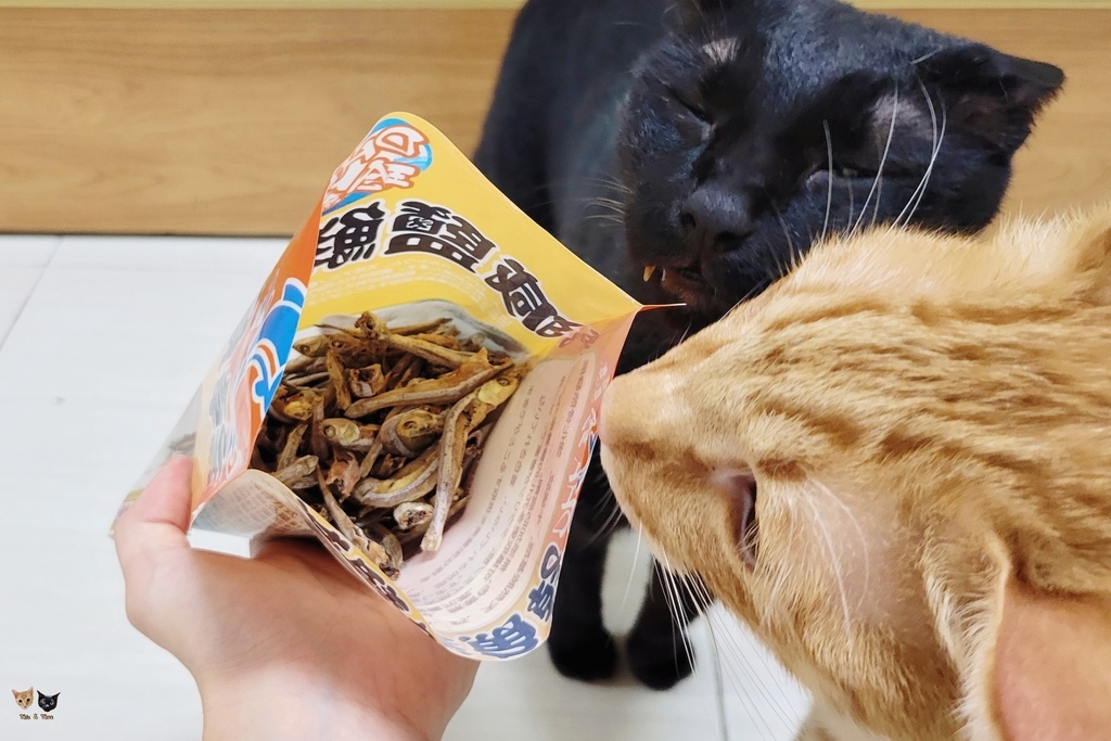 好啦,其實之前讓他們吃整尾小魚乾或大魚乾時,就已經發現這個現象了