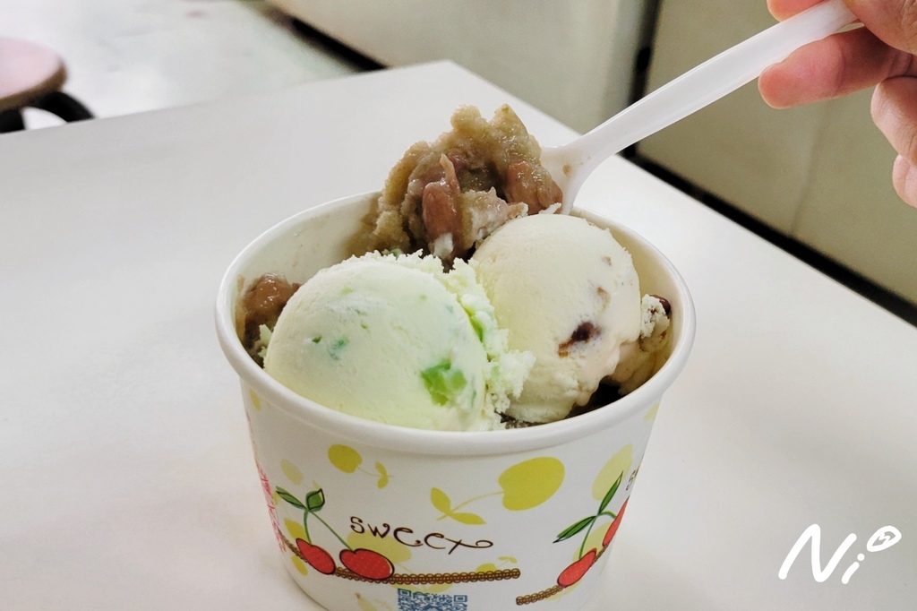 內容:綠豆沙、彎豆、冰淇淋2球(口味任選)